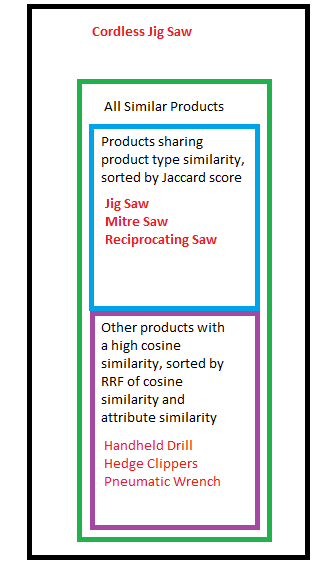 As an overview, I aim to group and sort products based on similarity. In a previous post, I grouped products based on taxonomy hierarchy and product prices. Now, I will augment this approach by sorting products by their similarity such that all “jig saws” are beside each other and reciprocating saws ranked close to “jig saws” but are not co-mingled.
